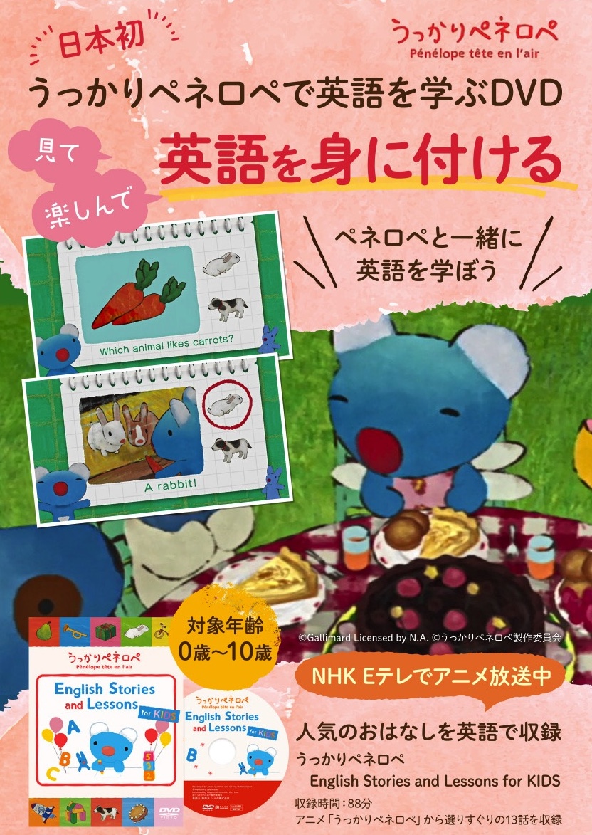 公式サイトはこちら うっかりペネロペ英語学習について NHK Eテレ放送「うっかりペネロペ」英語学習は、かわいいコアラのペネロペと一緒に楽しく英語が学べる教材です。親しみやすいストーリーや日常会話を通じて、自然に英語力を身につけられます。お子さまが興味を持ちながらリスニングやスピーキング練習ができるので、初めての英語学習にもぴったりです。楽しく続けられる工夫が満載です。 商品名 NHK Eテレ放送「うっかりペネロペ」の英語版で英語を身に付ける幼児向け英語学習 カテゴリ 幼児教育